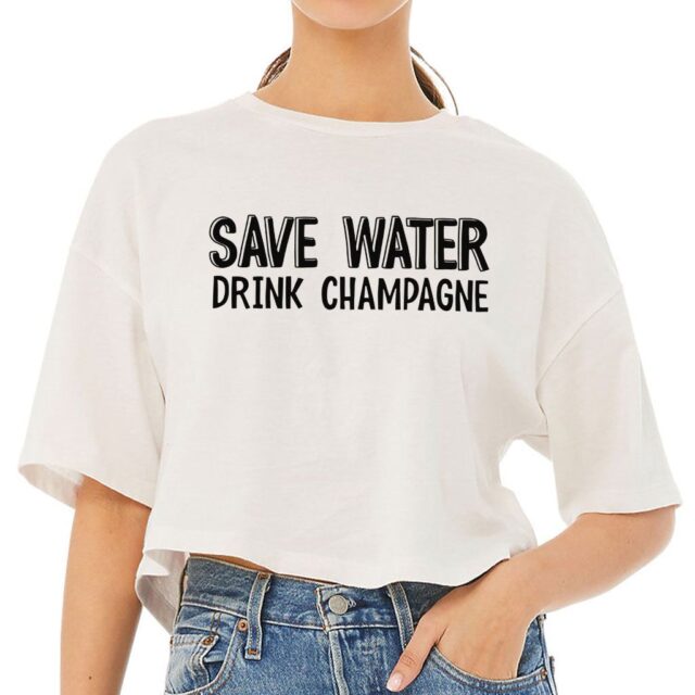 Save Water Drink Champagne Women’s Crop Tee Shirt – Funny Champagne Gift Ideas – Gift for Women